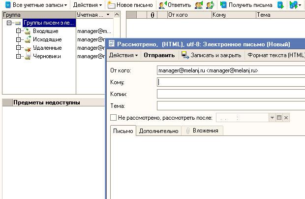 Встроенный почтовый клиент - позволяет принимать заявки на запись по электронной почте. При отсутствии необходимости он может быть отключен.